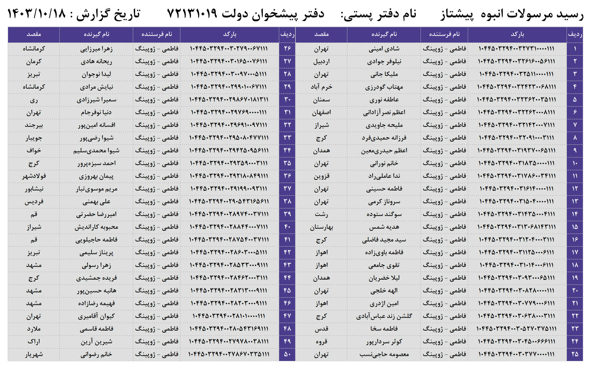 📦 بخش کدهای رهگیری 🧿 23 آذر ماه ثبت شد ✅